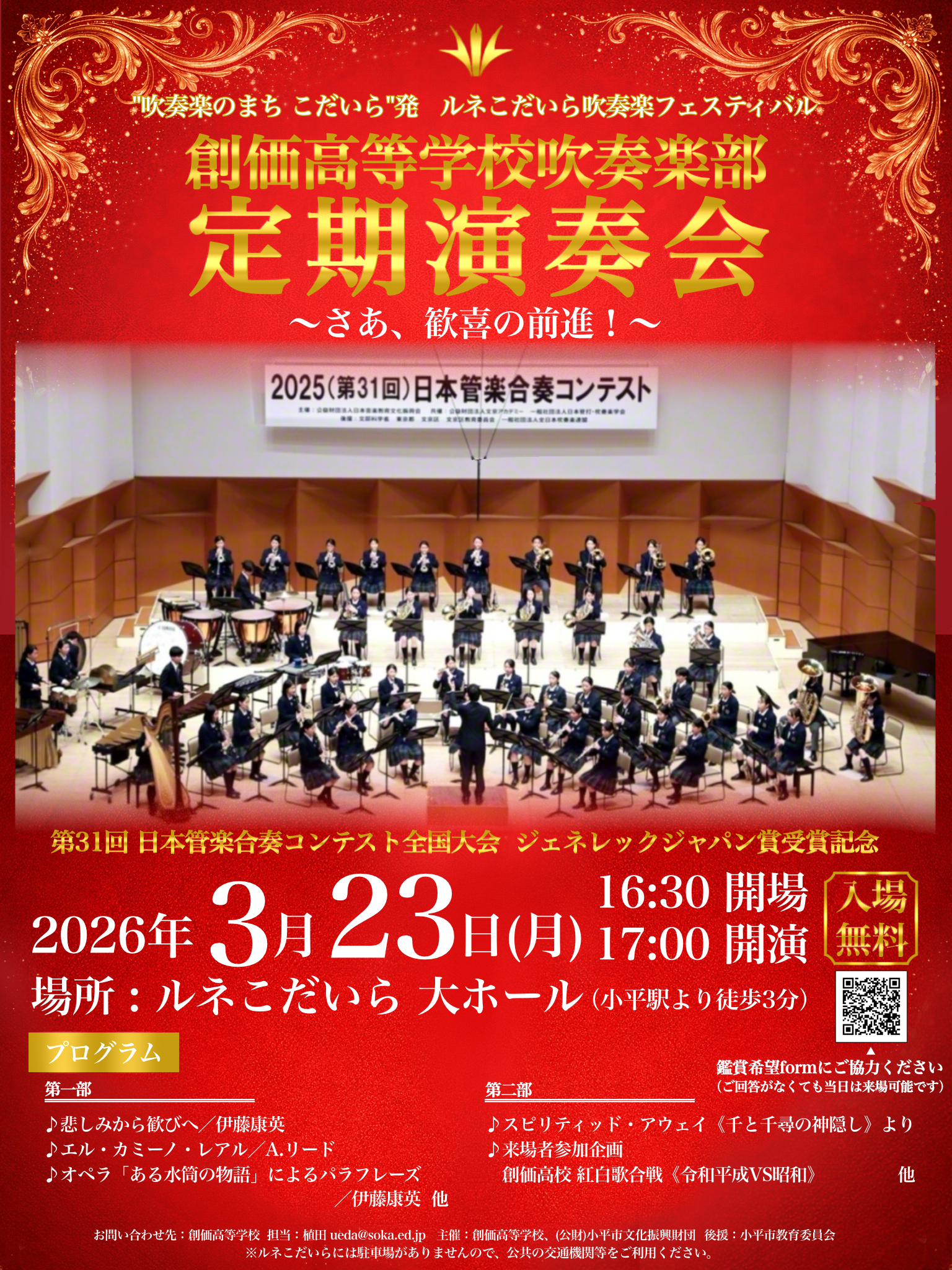 創価高校吹奏楽部の定期演奏会にご招待します!