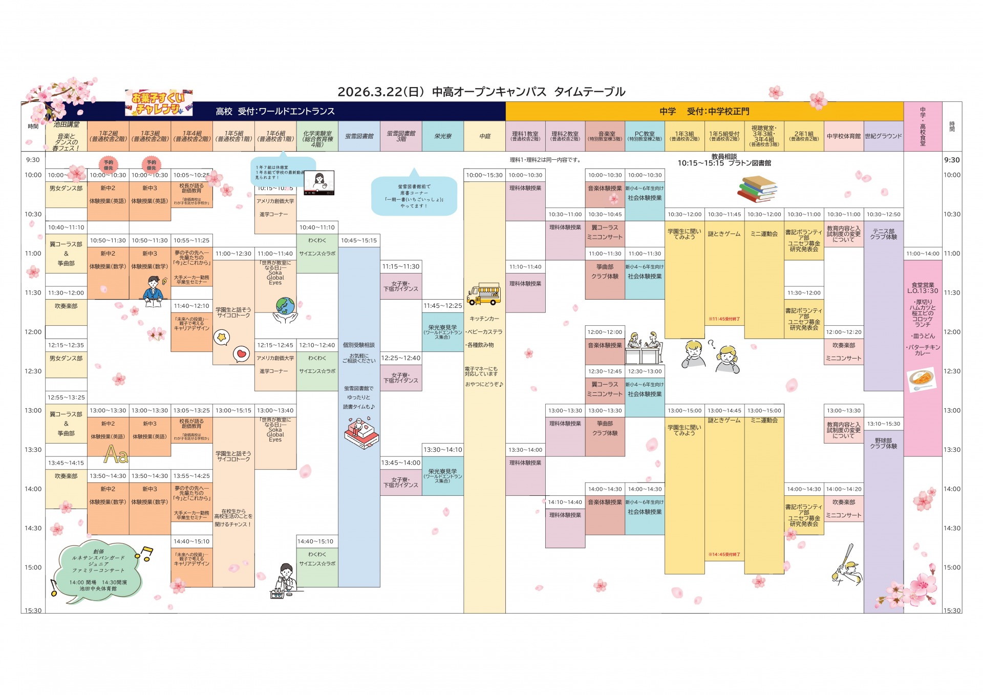体験授業や海外研修報告、卒業生による創価教育セミナー、春のミニコンサートや部活動公演など盛りだくさん!
