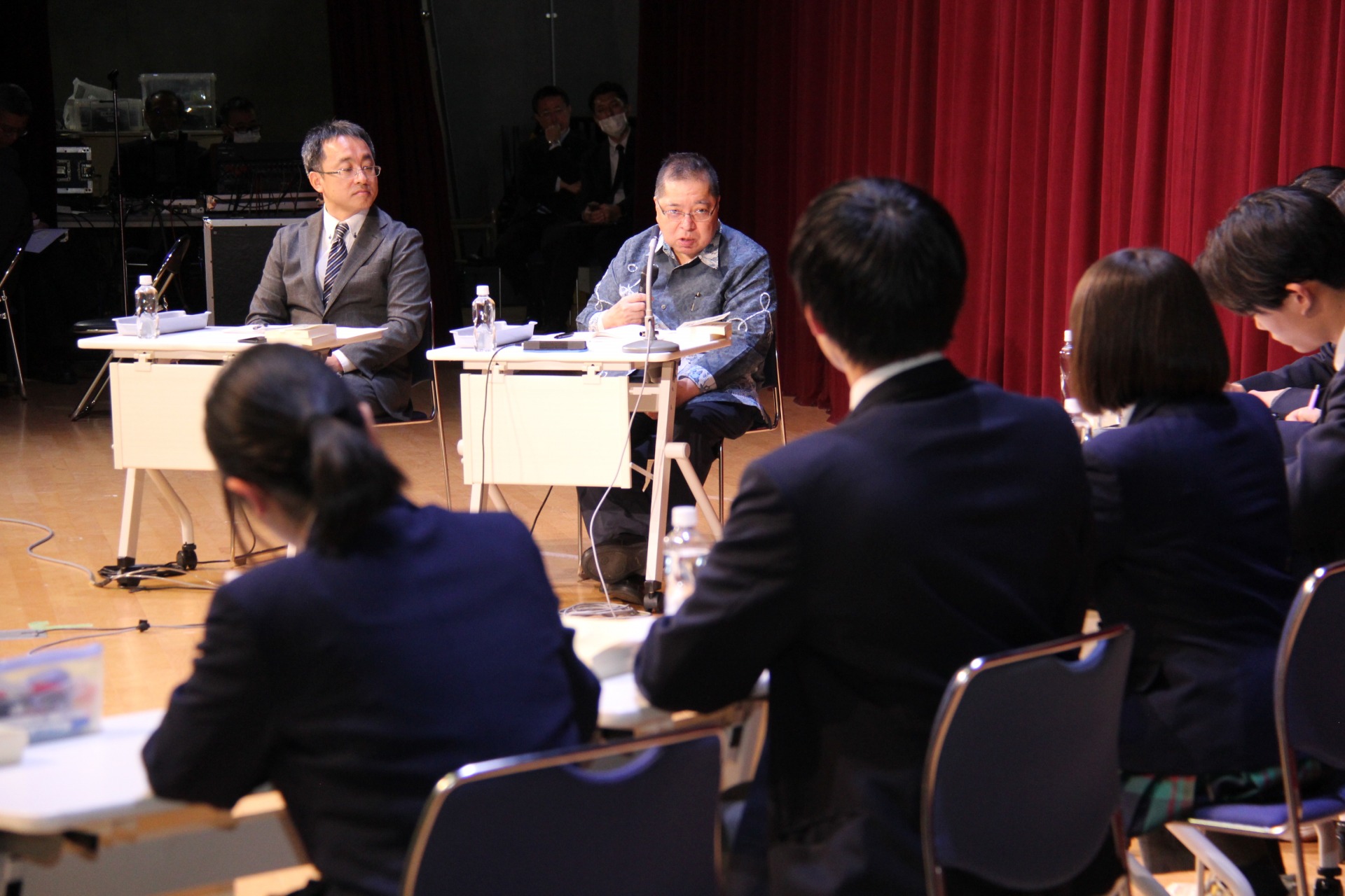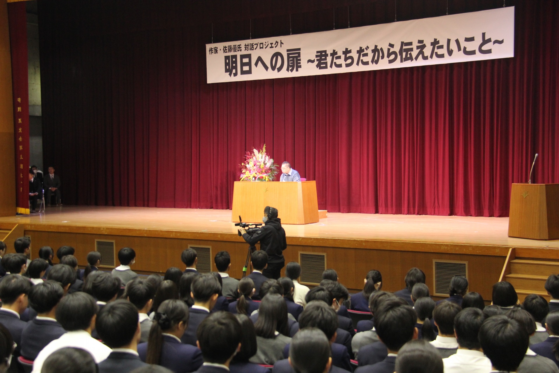 第1部の講演の冒頭で佐藤氏は、一昨年の創立者池田先生ご逝去発表の様子に触れながら、いかに池田先生が学園を大切に思っておられたかを力説されました。その後、第2部のトークセッションでは、パネラーの高校3年生や会場の生徒の質問に明快に答えながら、『青春対話』や『人間革命』『新・人間革命』の読了をとおして、常に創立者と心の対話を続けていけば、どのような困難も乗り越えられると訴えられました。最後に、共々に世界平和に向けて努力していこうと呼びかけ、この日の対話プロジェクトを終了しました。