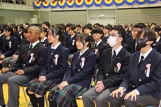 新入生たちは先輩の励ましを背に、一生涯の友をつくり、平和に貢献する人材へと成長しゆく決意を固める出発の式典となりました。