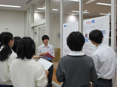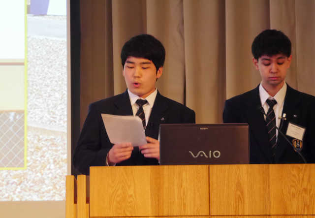 生徒の表現力・情報発信力の幅を大きく広げた、ポスターセッションおよびプレゼンテーション。これは、探求学習を通して学んだことを校内発表するとともに一般公開も行った。